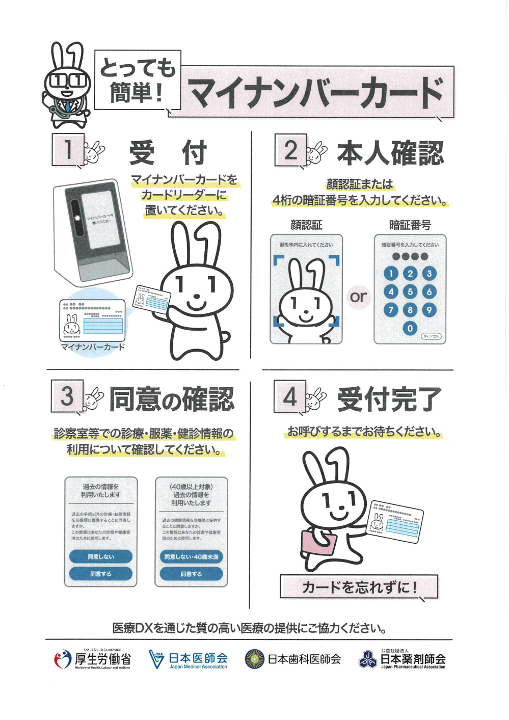 なお、明細書には、使用した薬剤の名称や行われた検査の名称が記載されるものですので、その点、御理解いただき、ご家族の方が代理で会計を行う場合のその代理の方への発行も含めて、自己負担のある方で明細書の発行を希望されない方は、会計窓口にてその旨お申し出ください。