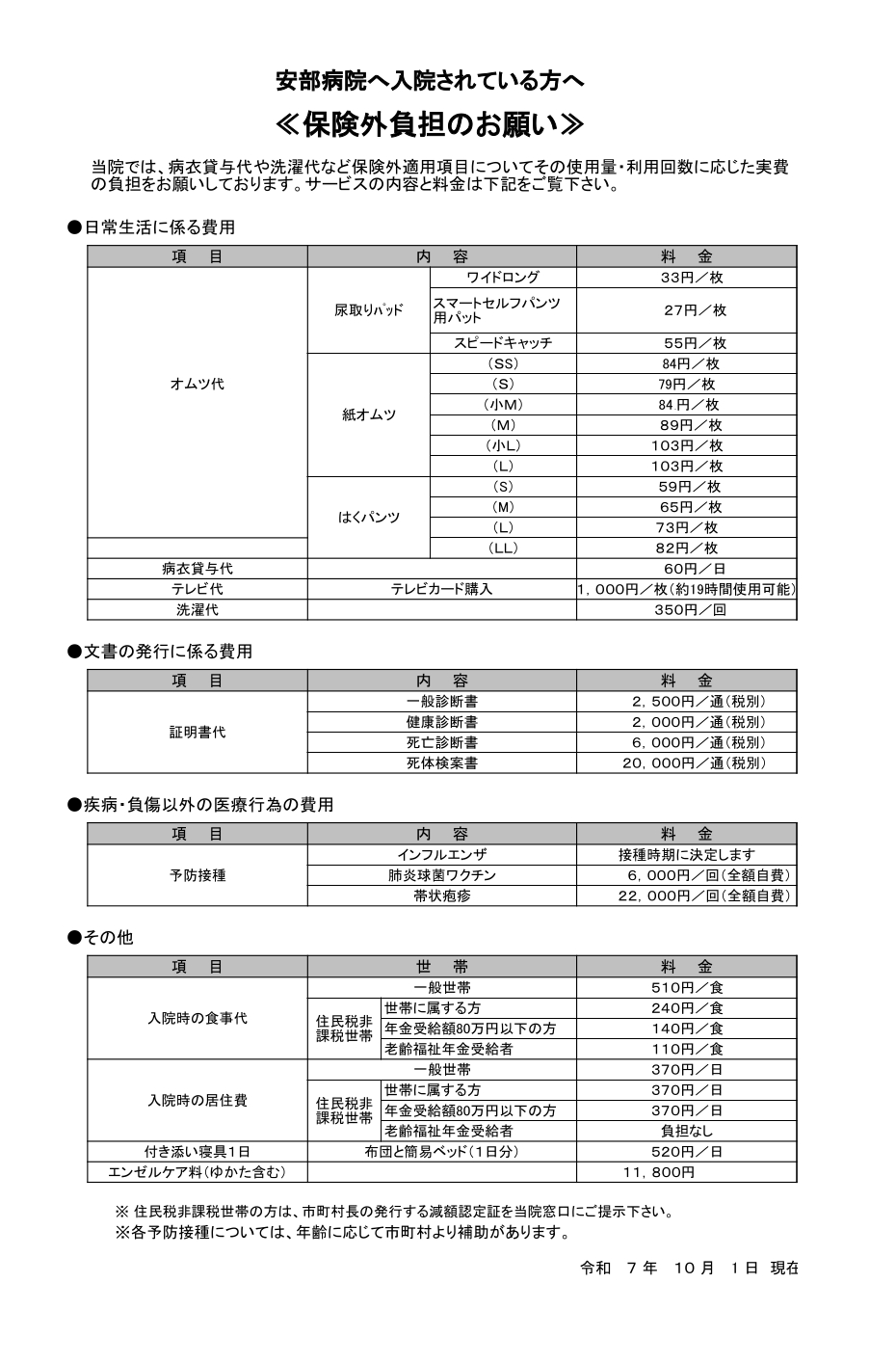 なお、明細書には、使用した薬剤の名称や行われた検査の名称が記載されるものですので、その点、御理解いただき、ご家族の方が代理で会計を行う場合のその代理の方への発行も含めて、自己負担のある方で明細書の発行を希望されない方は、会計窓口にてその旨お申し出ください。